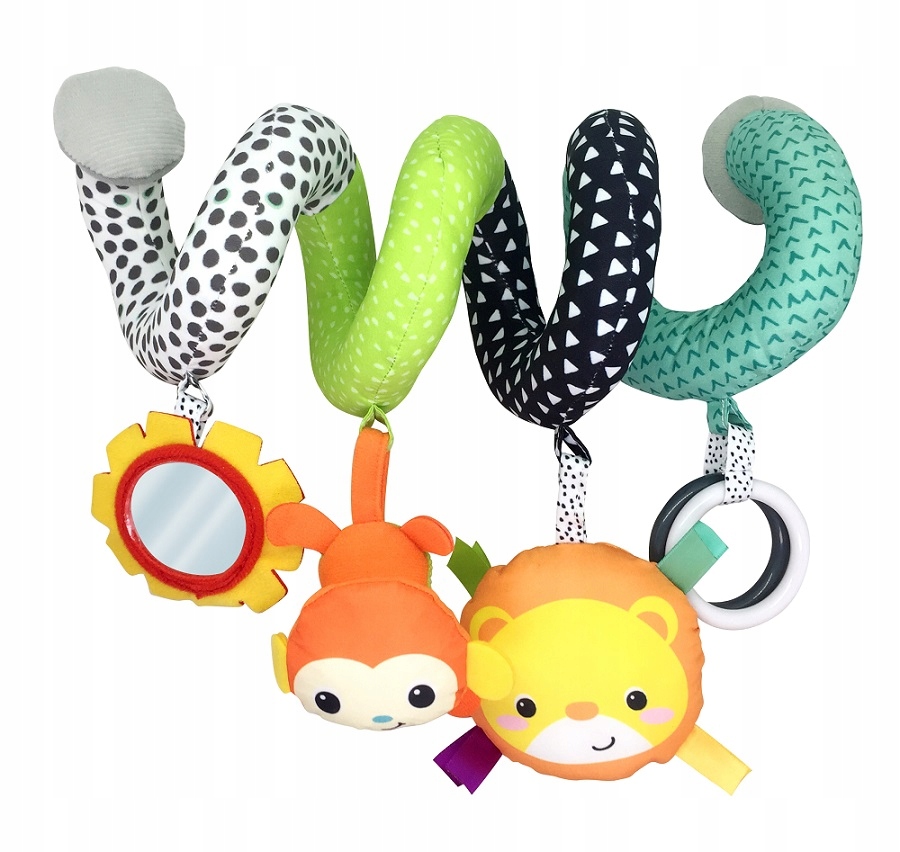 Kolorowa spiralka idealna do wózka, łóżeczka, nosidełka lub fotelika samochodowego. Łatwo przymocowuje się w wózku i zapewnia godziny wspaniałej zabawy.