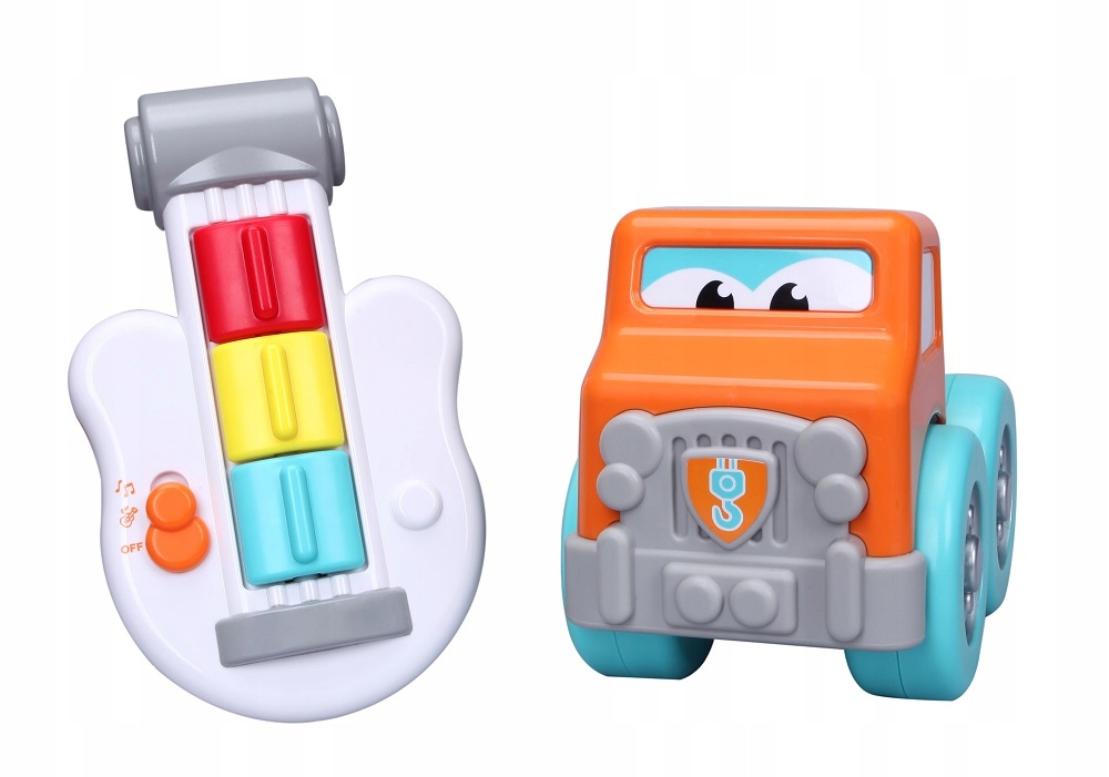 Auto holownik z instrumentem muzycznym. Gitarę można wyjąć i używać osobno.