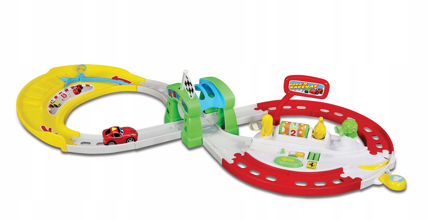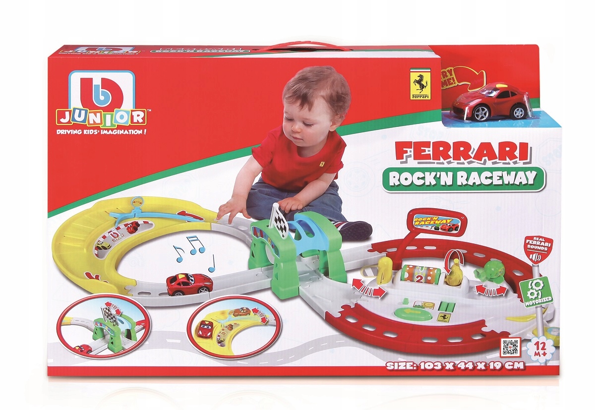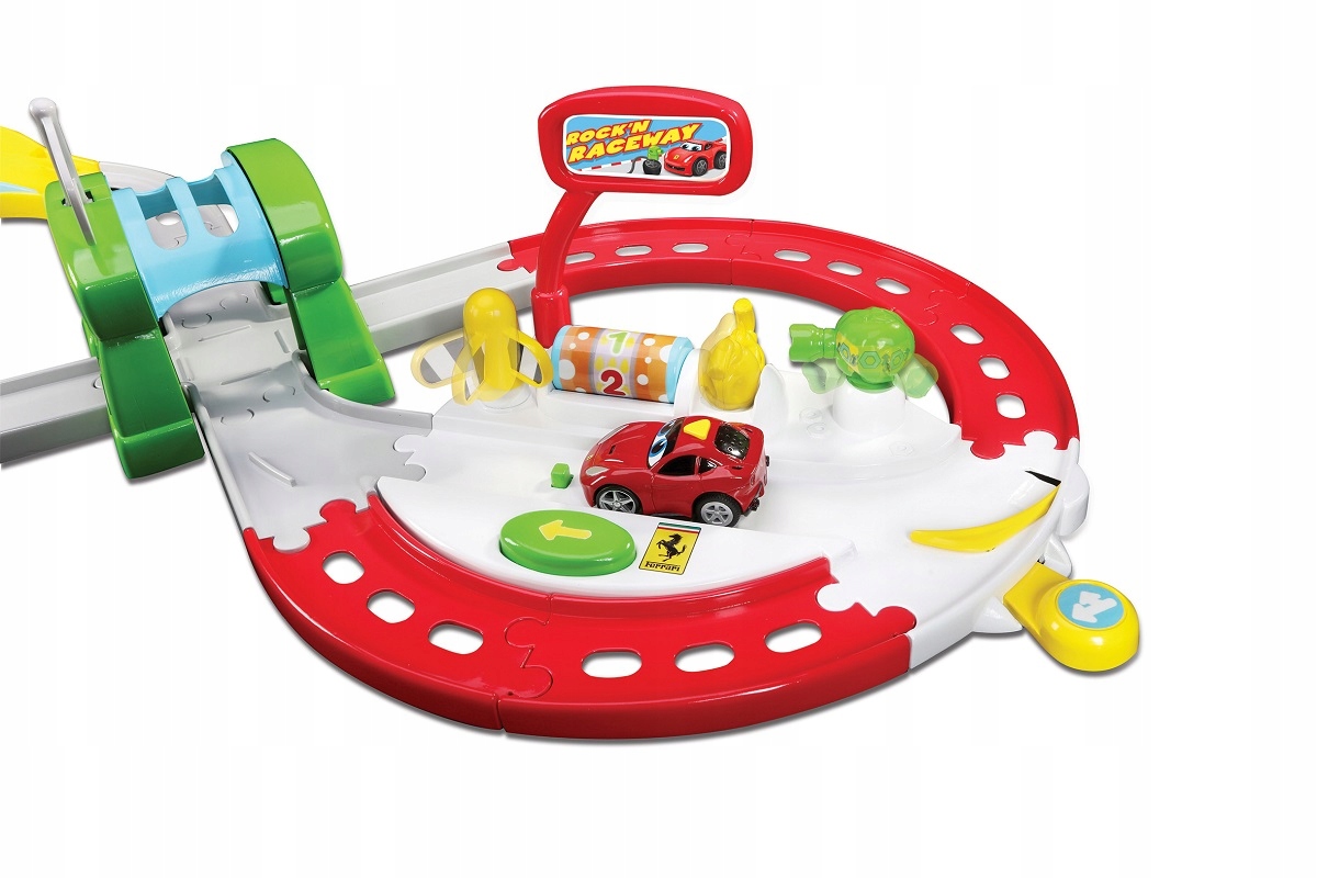 Tor z pętlą zapewni nieograniczony czas zabawy! Zawiera mnóstwo przeszkód i akcesoriów, które zaangażują na długie godziny. Posiada automatyczny przełącznik pasów ruchu, tunel z ruchomą flagą zwycięzcy, a także specjalną dźwignię, aby zatrzymać auto i zatankować. W zestawie zmotoryzowane autko F12 Berlinetta 3,5”, które wydaje realistyczne dźwięki silnika Ferrari.