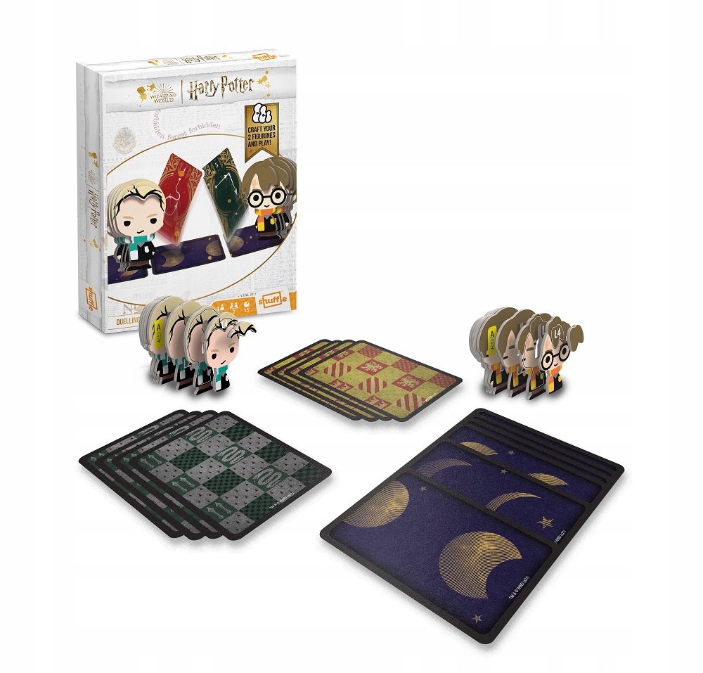Zagraj jako Harry lub Draco i stań do pojedynku. Używaj kart czarów, aby zrzucić przeciwnika z podium.