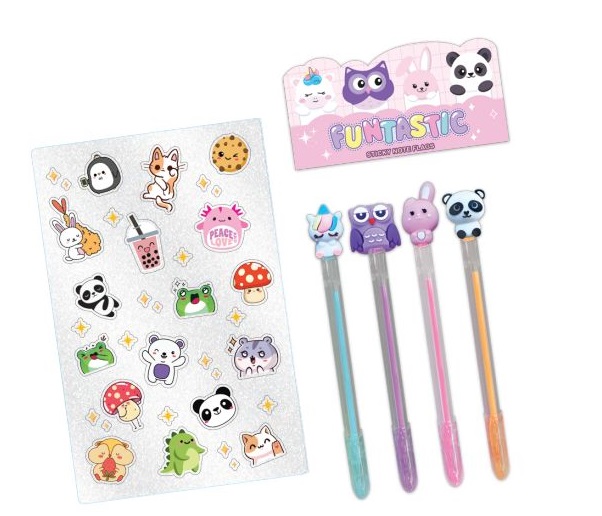 HOT FOCUS Zestaw długopisów żelowych+naklejki – Zwierzątka