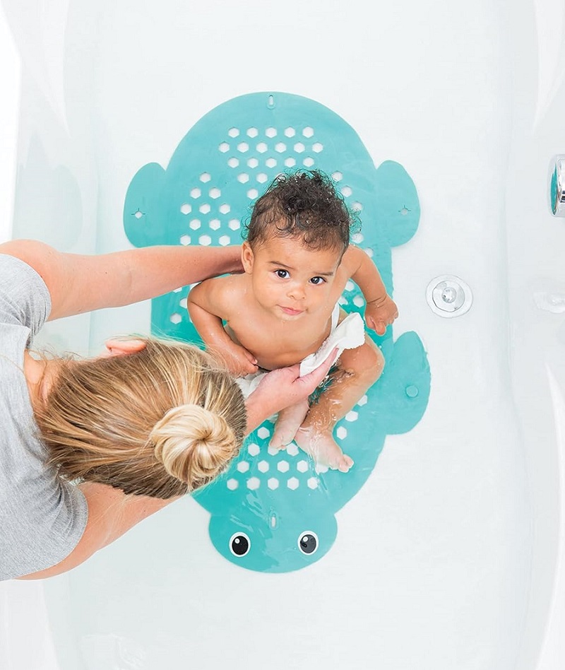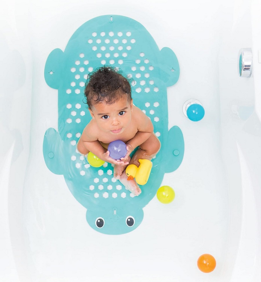 Mata kąpielowa 2 w 1 zapobiega ślizganiu się maluchów w wannie, a także służy jako kosz do przechowywania zabawek.