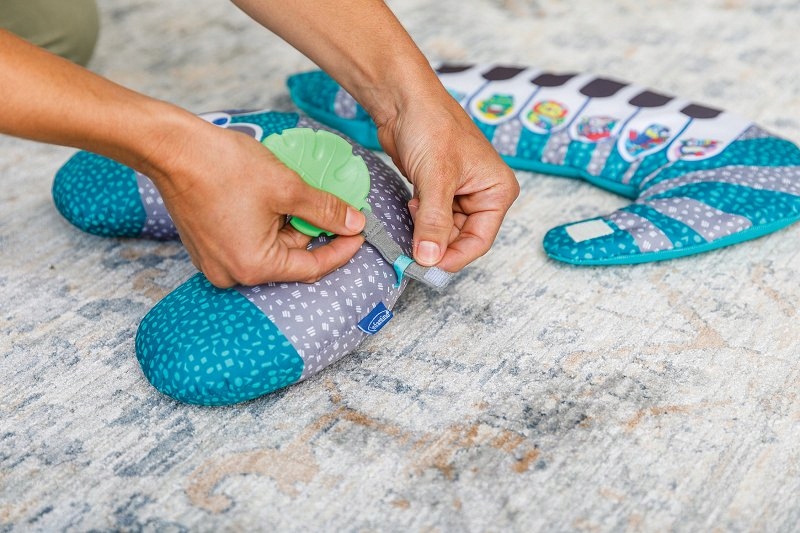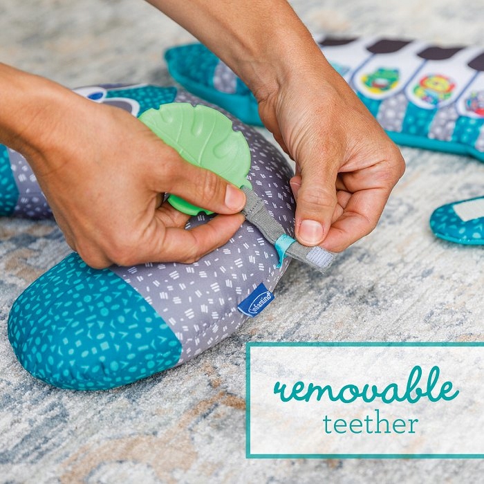 Dodatkowa poduszka w kształcie rogala będzie idealna do zabawy na brzuszku. Zabawka zawiera lusterko oraz gryzaczek, które można odczepić i używać jako osobne zabawki.