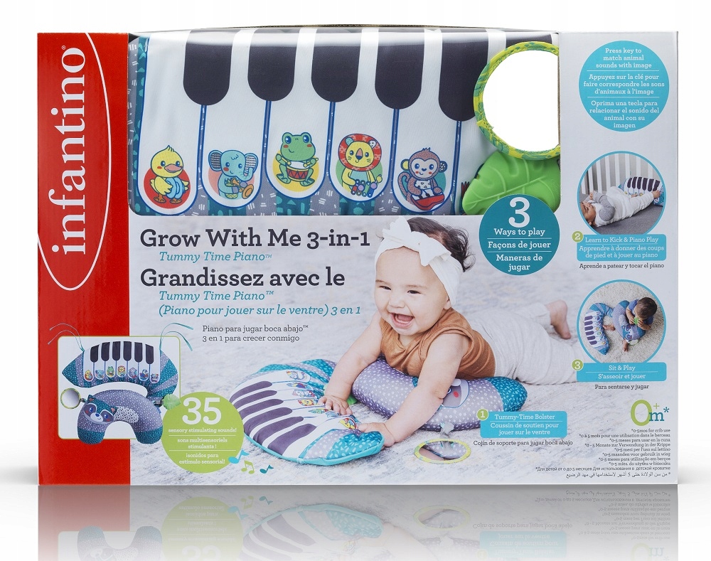Pianinko rośnie wraz z dzieckiem i oferuje 3 sposoby na zabawę. Zachęca maluszka do kopania (dziecko uruchamia wówczas różne, ciekawe dźwięki), spędzania czasu na brzuszku oraz siedzenia i zabawy.