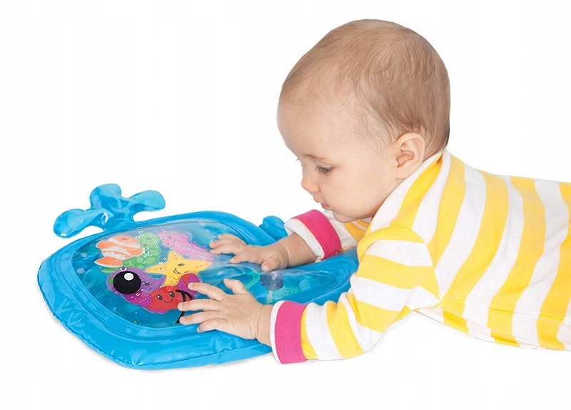 Wodna mata wieloryb doskonała do zabawy, gdy dziecko leży na brzuszku lub siedzi na krzesełku.