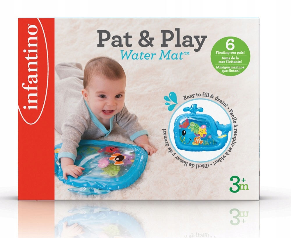 Wieloryba wypełniamy wodą. W środku znajduje się 6 morskich zwierzątek, które będą unosić się na wodzie i przemieszczać się, gdy dziecko naciśnie na matę.