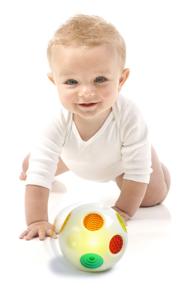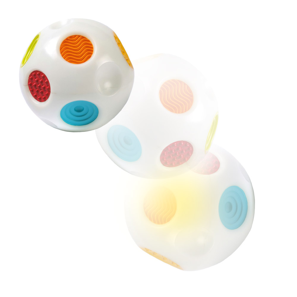 Dodatkowo, gdy piłka przestaje się toczyć, wydaje głosowe oznaczenie kolorów po angielsku, co pomaga maluchowi w nauce rozpoznawania i nazewnictwa kolorów.