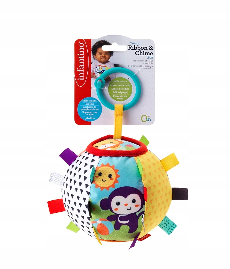 Ta miękka piłka z pewnością stanie się przyjacielem każdego malucha! Przy chwytaniu zabawka szeleści i delikatnie grzechocze. Ma mnóstwo kolorów, wzorów i wypustek oraz różne zwierzątka. Zawiera też bezpieczne lusterko. Różne faktury materiału stymulują zmysł dotyku. Ciekawe kolory zachęcają do chwytania i rzucania piłką. Może służyć jako zawieszka.