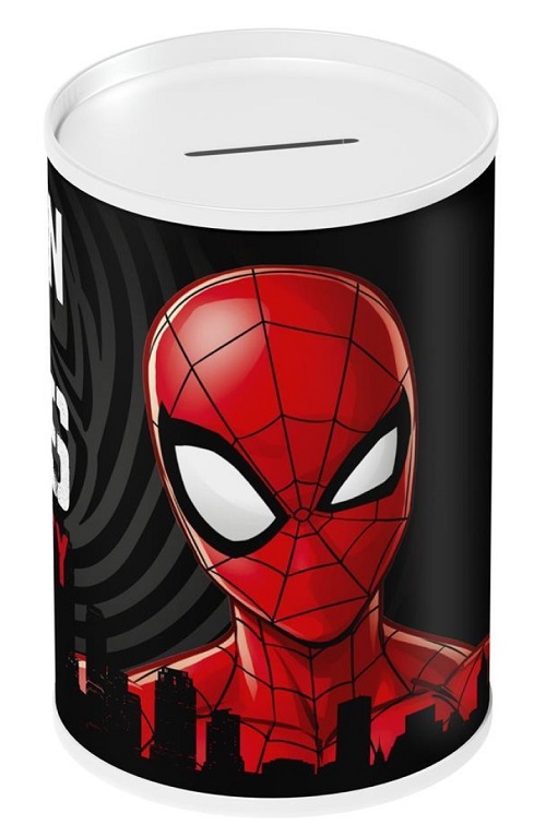 Metalowa skarbonka z motywem Spidermana.