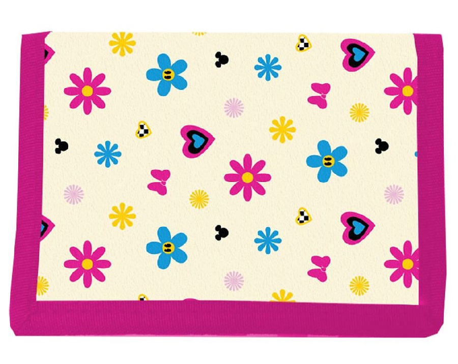 Starannie wykonany portfel zapinany na rzep z motywem Myszki Minnie.