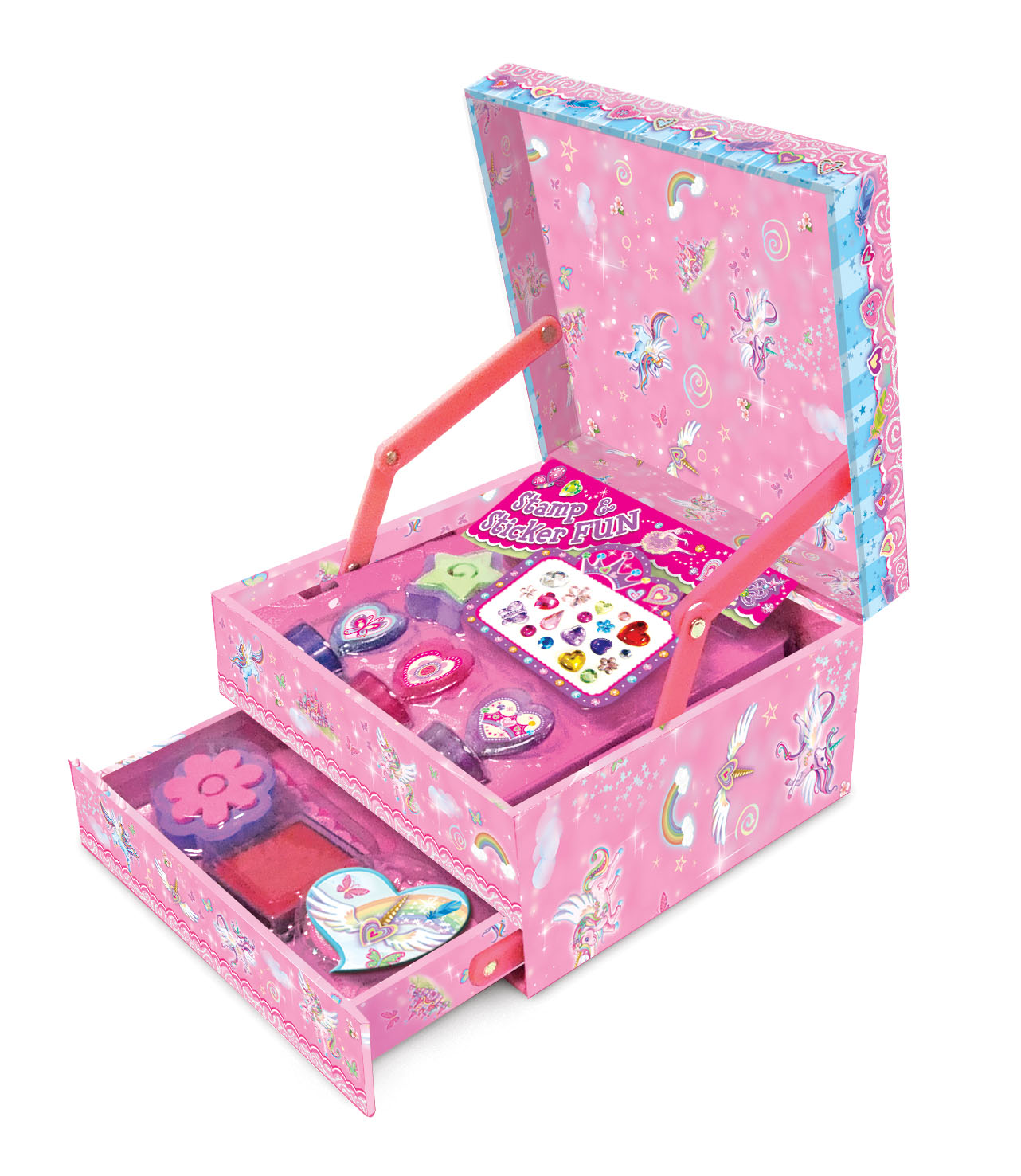 Szkatułka z szufladką i pieczątkami – Jednorożec