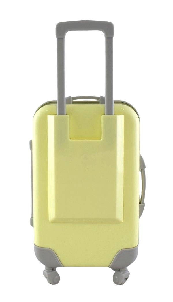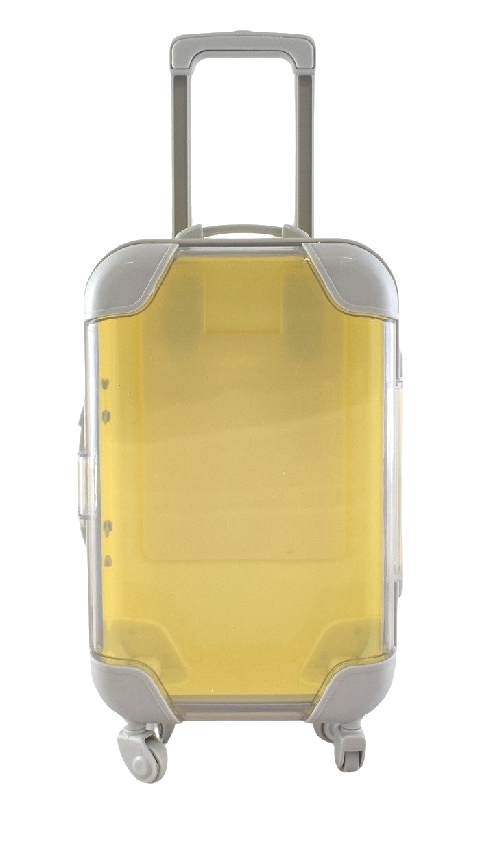 Mini walizka podróżna – pojemnik na różne akcesoria. Posiada ruchome kółka, wysuwaną rączkę i przezroczyste wieczko.