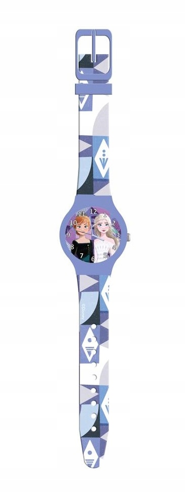 Zegarek analogowy z motywem Krainy Lodu. Posiada 3 wskazówki: godzinową, minutową i sekundową. Długość zegarka z paskiem: 22,5 cm. Średnica tarczy z obudową: 3,5 cm.